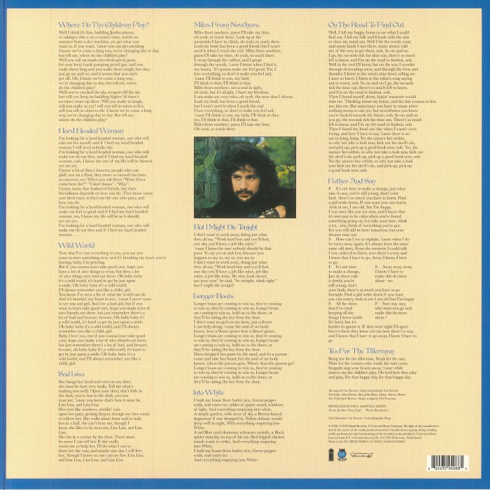 Produced by Paul Samwell-Smith, the album features Stevens’ signature blend of folk, pop, and spiritual reflection. With enduring tracks like “Wild World,” “Father & Son,” “Where Do The Children Play?” and “Sad Lisa,” the album explores themes of innocence, generational tension, and the search for meaning. It remains one of the most beloved records of its time — inducted into the Grammy Hall of Fame and ranked among Rolling Stone’s 500 Greatest Albums of All Time.