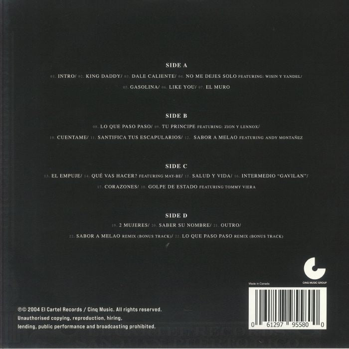 This reissue preserves the full original tracklist, including collaborations with Wisin & Yandel, Zion & Lennox, and Andy Montañez, alongside remixes and deep cuts that showcase Yankee’s lyrical fire and DJ Luny Tunes’ production wizardry. A landmark release, now reissued with archival reverence and collector-grade presentation.