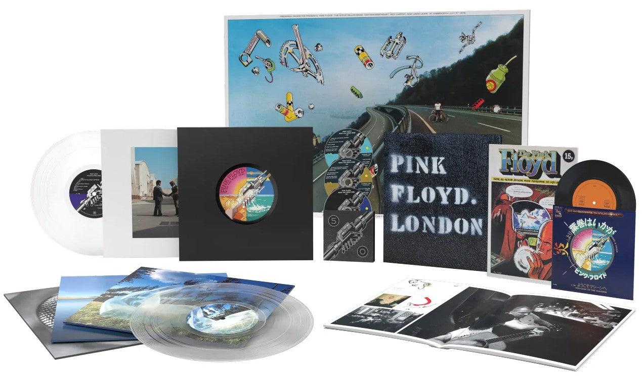 Includes nine studio rarities, six previously unreleased demos, and 16 live recordings from the legendary 1975 Los Angeles Sports Arena show — officially released for the first time and restored by Steven Wilson. Also features three concert screen films and a short by Storm Thorgerson. Packaged with a hardcover book, comic tour programme, and Knebworth poster.